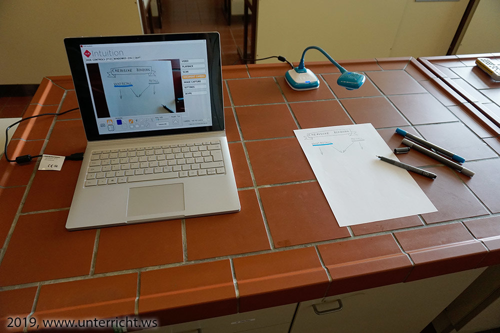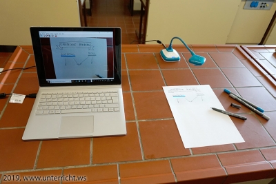 - schreiben unter der Webcam auf Papier (als Ersatz für die Tafel)